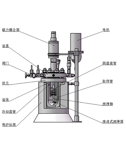 該結構為環形磁力密封裝置,依靠兩組強力磁鋼異極相吸的原理通過磁場穿透密封罩體來實現力矩的無接觸式傳遞,由于電機經過皮帶二級減速,故而其攪拌特點是大轉矩低轉速(≤750r/min),適合攪拌中高粘度(cp≥5000mpa.s)或固體顆粒含量較多的反應物料介質體系。